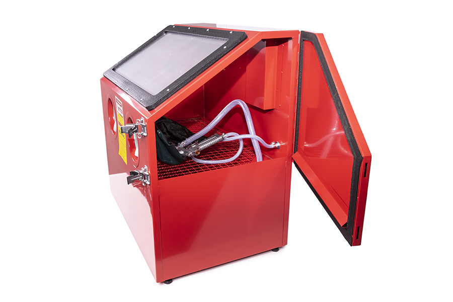 Настольная пескоструйная камера предназначена для обработки воздушно-пескоструйным способом поверхностей изделий, снятия ржавчины, грунта, слоев краскии пр. Позволяет производить обработку изделий и инструментов без создания специальных площадок и дополнительной защиты оператора. Для работы необходимо подключитель изделие к системе подачи сжатого воздуха.