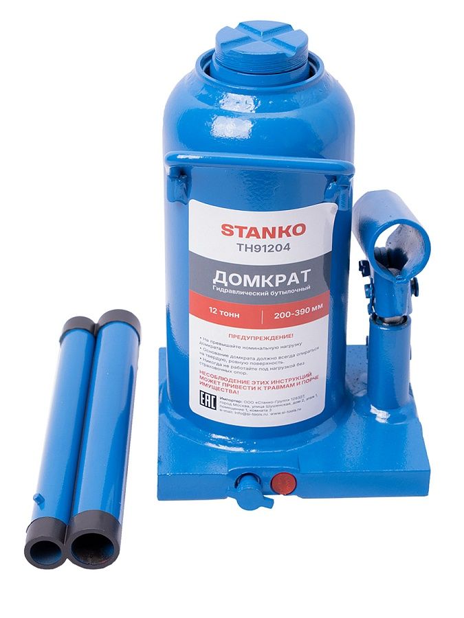 Домкрат бутылочный грузоподъемностью до 12 тонн используется при ремонте и техническом обслуживании транспортных средств, для поднятия тяжестей при строительстве или ремонтных работах.