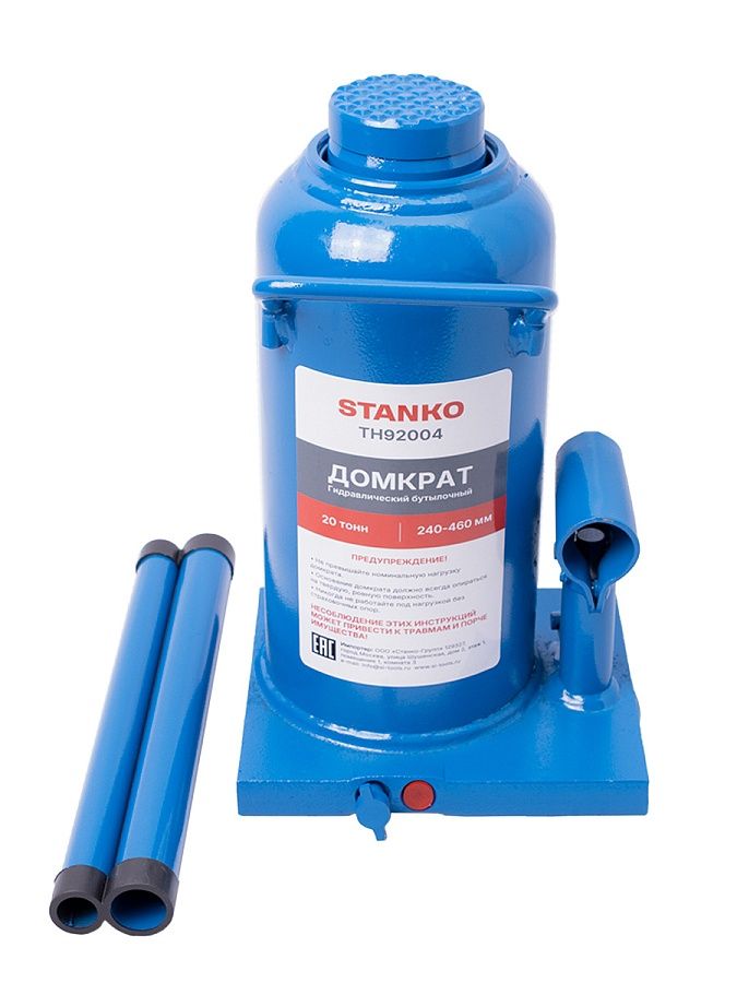 Домкрат бутылочный грузоподъемностью до 20 тонн используется при ремонте и техническом обслуживании транспортных средств, для поднятия тяжестей при строительстве или ремонтных работах.