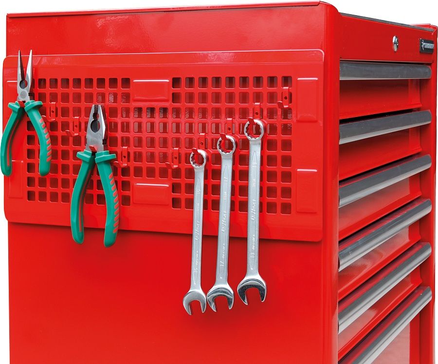 • 10 крючков в комплекте и более 177 ячеек для крепления крючков для размещения инструментов.