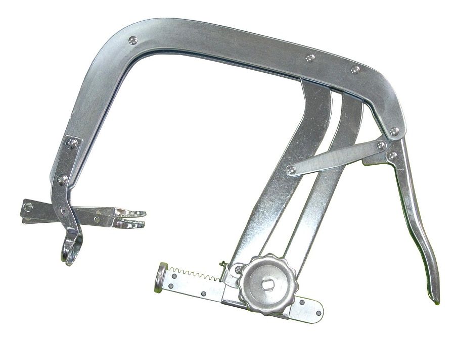 Предназначен для сжатия пружин впускных и выпускных клапанов. Особенности: Выполнен в форме струбцины. Используется при снятой головке блока цилиндров. Регулировка рабочего хода с помощью зубчатой рейки в зависимости от длины клапана. Фиксация струбцины в необходимом положении позволяет освободить руки для удобства демонтажа стопорных сухарей клапана. Рабочий диапазон: 70 – 150 мм Набор относится к разряду профессионального инструмента. Его использование допускается только квалифицированным персоналом с соблюдением техники безопасности!