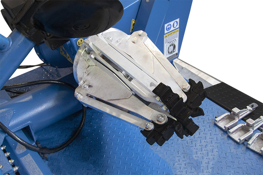 Посадка колеса на цангу («тюльпан») осуществляется с помощью подвижного стола, который управляется мобильным манипулятором (пультом) с двумя джойстиками. Манипулятор позволяет оператору работать в любом месте вокруг станка.